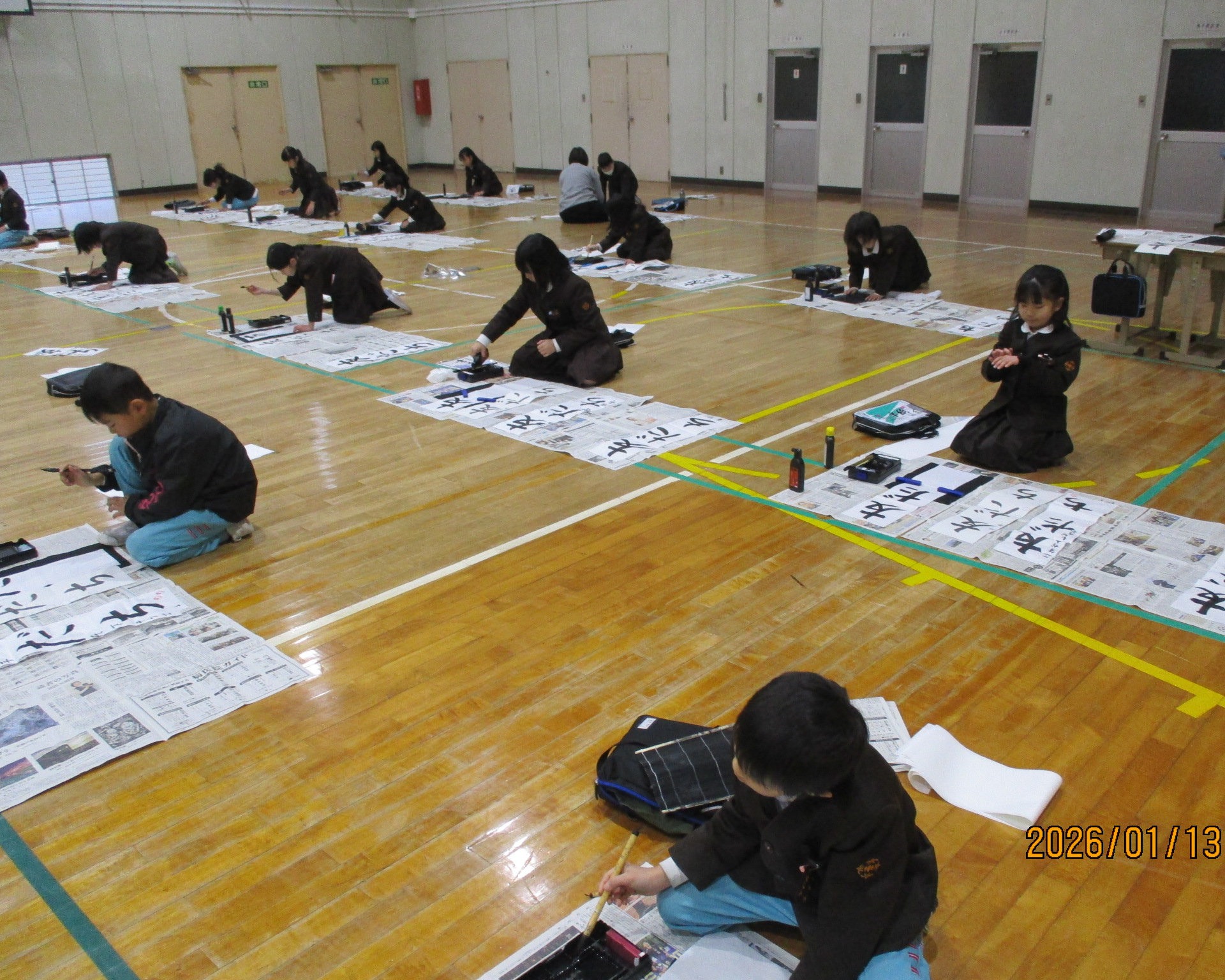 2026年1月13日 17時36分3年生は、初めて毛筆による書初め大会を行いました。